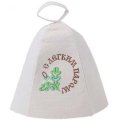 Шапка для бани и сауны из натурального белого войлока с вышивкой «С легким паром». Рекомендуется при посещении бани и сауны для защиты головы от вредного воздействия высокой температуры и во избежание перегрева организма. Натуральный войлок, обладая высокими термоизоляционными свойствами, не только предохраняет организм от теплового удара, но и отлично впитывает пот, обеспечивая дополнительный комфорт пребывания в бане и сауне. Кроме защиты от перегрева и впитывания пота, банная шапка оберегает волосы от повреждения горячим воздухом.